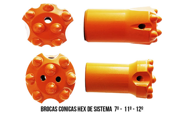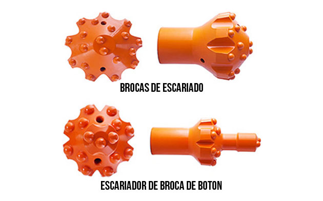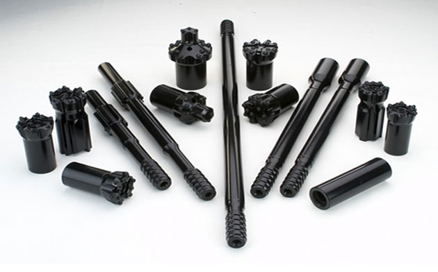 Las herramientas de perforación de martillo superior incluyen: la broca, la barra, el adaptador de culata y el manguito. El pistón de la perforadora impacta directamente en el adaptador de culata, hace que la potencia de impacto llegue a la broca a través de la barra en forma de onda, para trabajar en la rotura de la roca. La forma de ruptura primaria está impactando mientras que la secundaria está cortando; Ambos son con alta eficiencia de perforación.